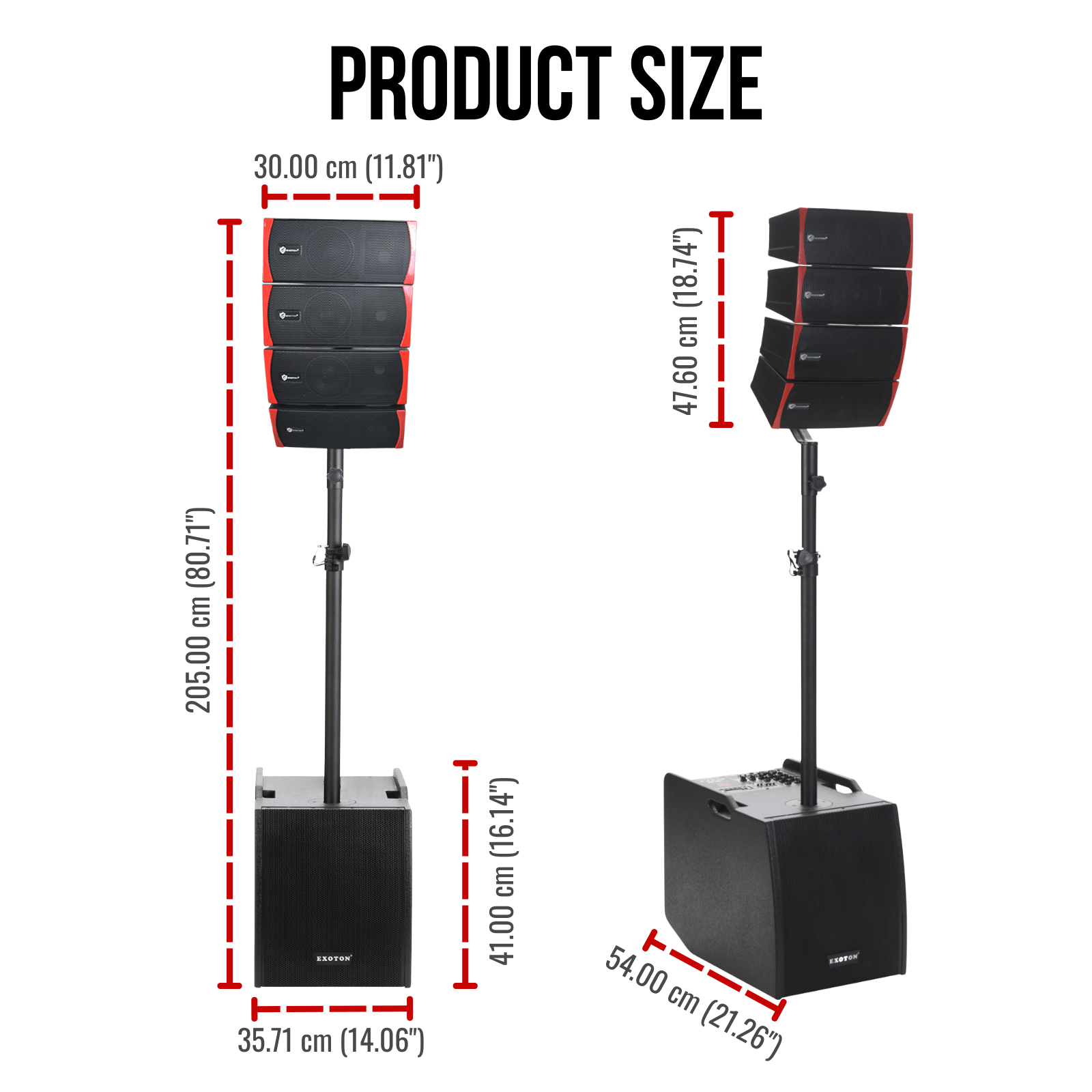 - Line Array Speakers Size: 29.13 x 17.32 x 10.04 inches (13.4kg)